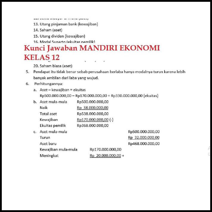 Jawaban Soal Ekonomi Kelas 12