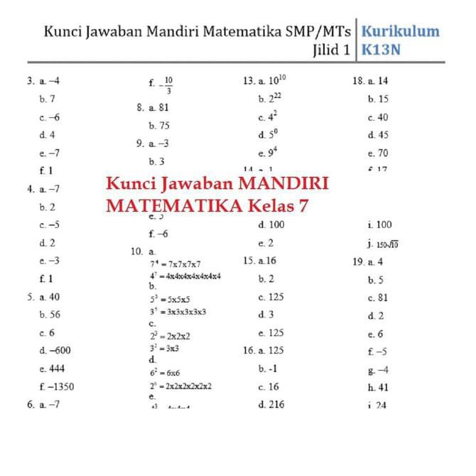 Buku Mandiri Matematika Smp Kelas 7 K13 Soal Jawaban Kurtilas
