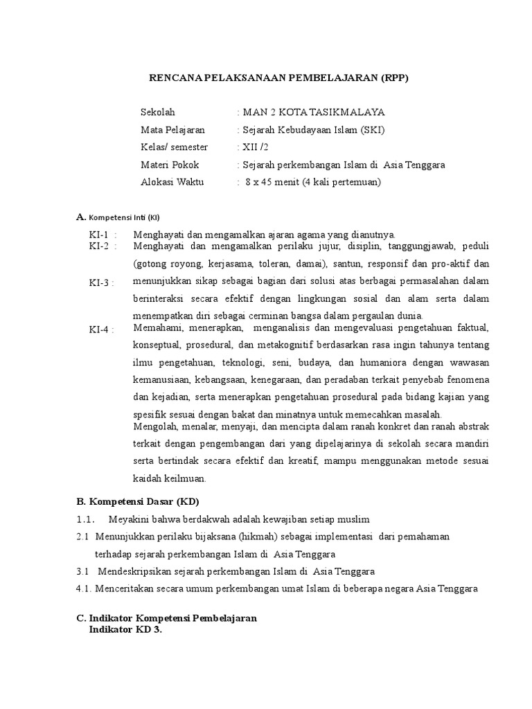 Rpp Sejarah Kebudayaan Islam Ski Ma Kelas X