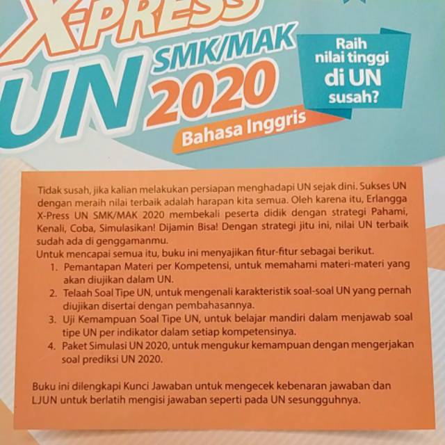 Buku Erlangga Xpress X Press Un Smk Mak 2020 Bahasa Inggris Kisi