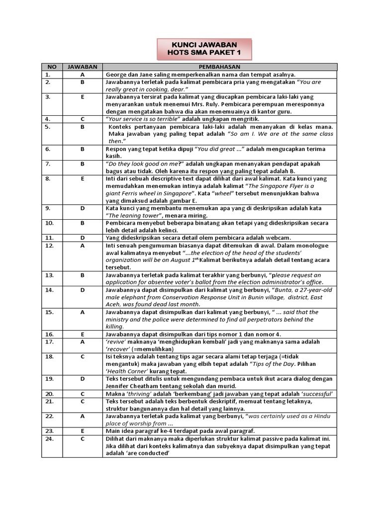 Kumpulan Contoh Soal Hots Bahasa Inggris Dan Jawabannya English