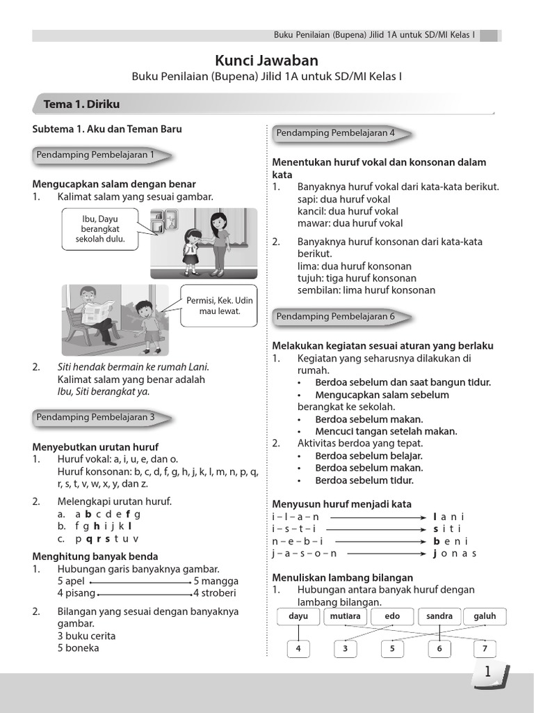 Kunci Jawaban Bupena 1a K13 Revisi