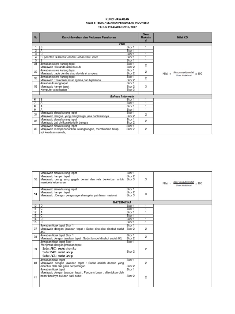 Kunci Jawaban Buku Tema 7 Kelas 5 Sd Dan Contoh Soal Lengkap