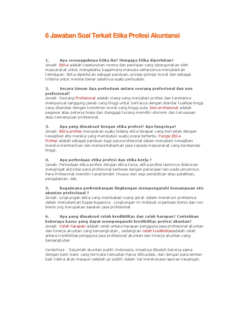 6 Jawaban Soal Terkait Etika Profesi Akuntansi