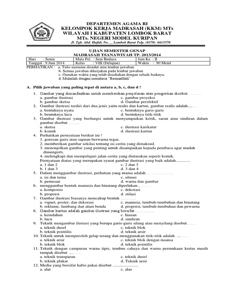 Soal Uts Pts Seni Budaya Kelas 7 Kurikulum 2013 Semester 2 Dan