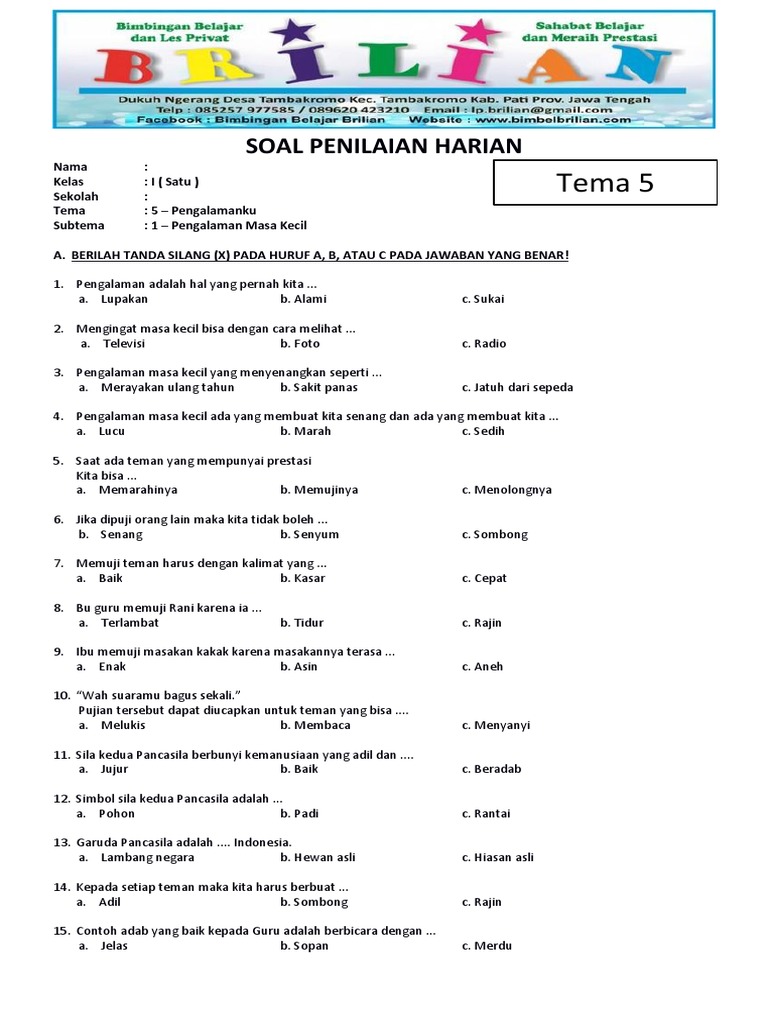 Gudang Soal Soal Kelas 1 Tema 5 Subtema 1 Pengalamanku