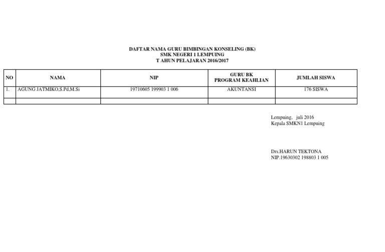 Daftar Nama Guru Bimbingan Konseling