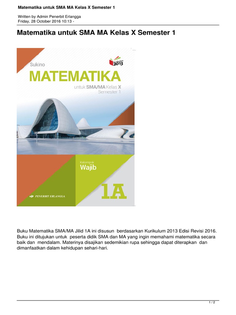 Http Www Erlangga Co Id Katalog Produk Terbaru 8943 Matematika Untuk Sma Ma Kelas X Semester 1 Pdf