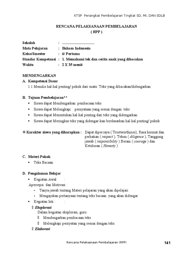 Doc Rpp Bahasa Indonesia Kelas Vi Ktsp Mindzor Sofyan Academia Edu