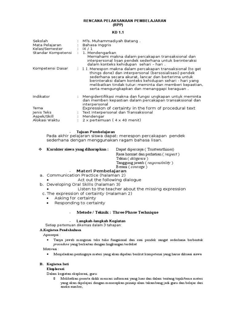 Rpp Bahasa Inggris Smp Berkarakter Kelas Ix
