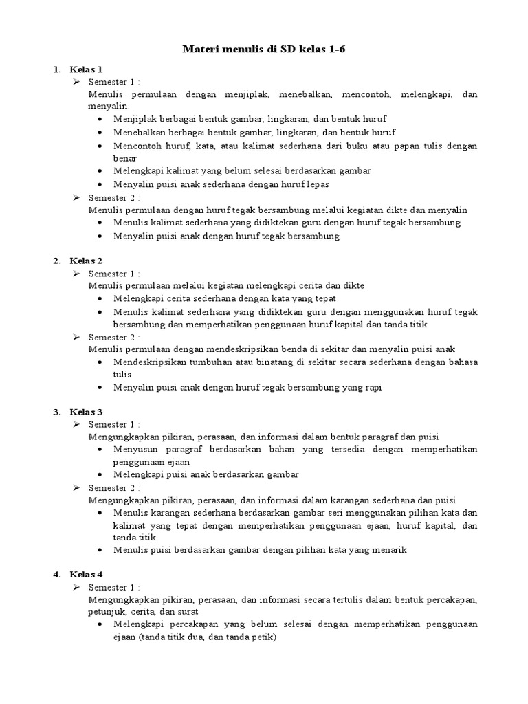 Materi Menulis Di Sd Kelas 1 6