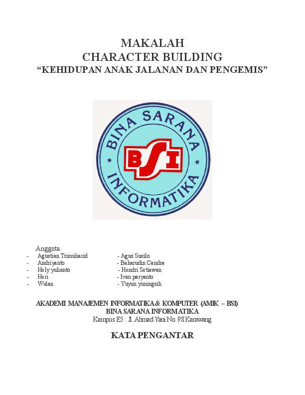 Doc Makalah Character Building Kehidupan Anak Jalanan Dan Pengemis Anggota Syidad Jundulloh Academia Edu