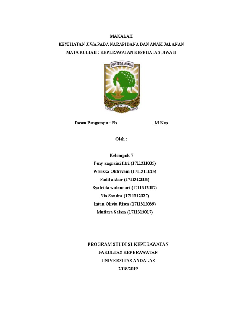 Makalah Kesehatan Mental Narapidana Dan Anak Jalanan