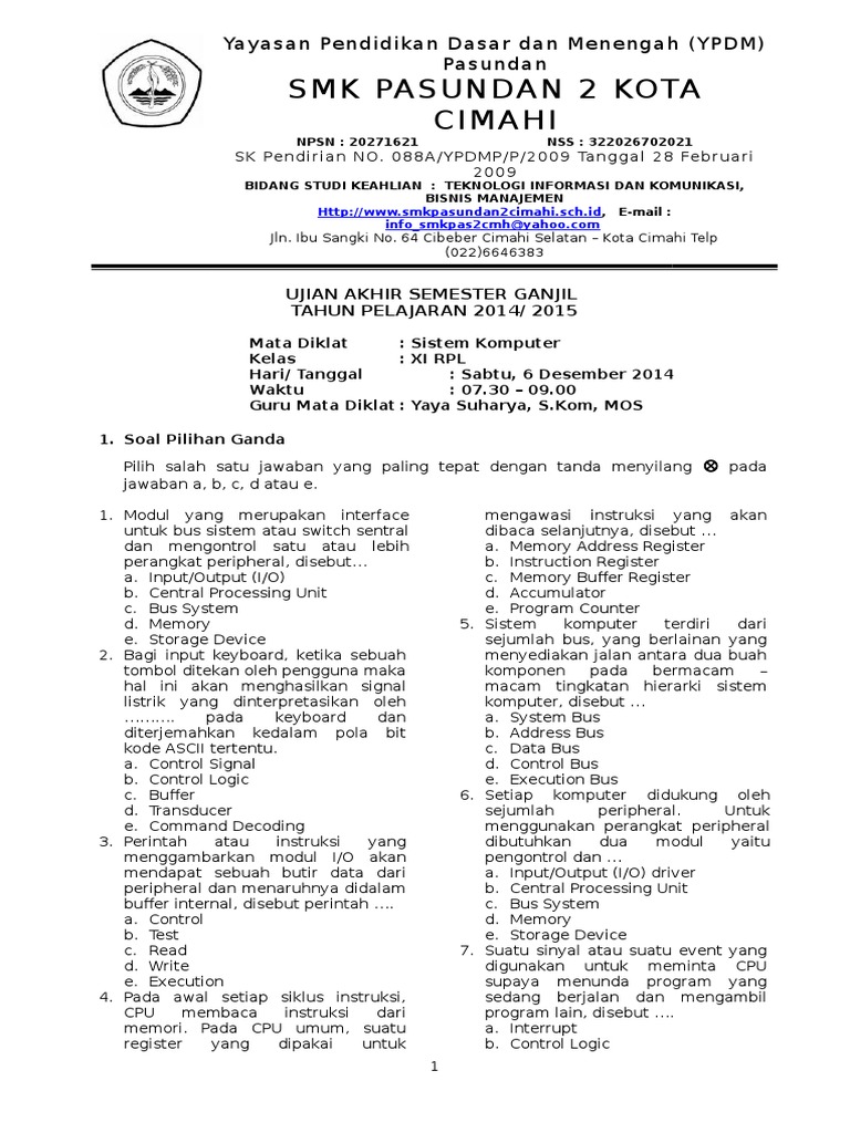 Soal Uas Ganjil 2014 2015 Pilihan Ganda Dan Essay Produktif Sistem Komputer Kelas Xi