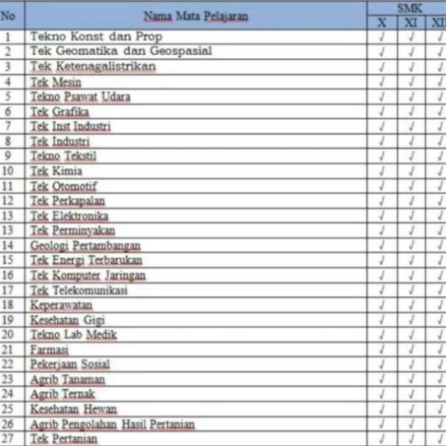 Daftar Mata Pelajaran Smk Jurusan Teknik Kendaraan Ringan K13 Revisi Wasito Info