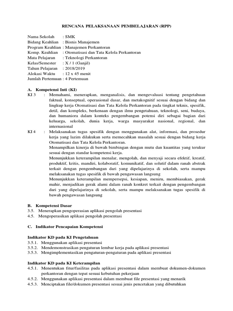 3 5 Dan 4 5 Rpp Mengoperasikan Aplikasi Presentasi