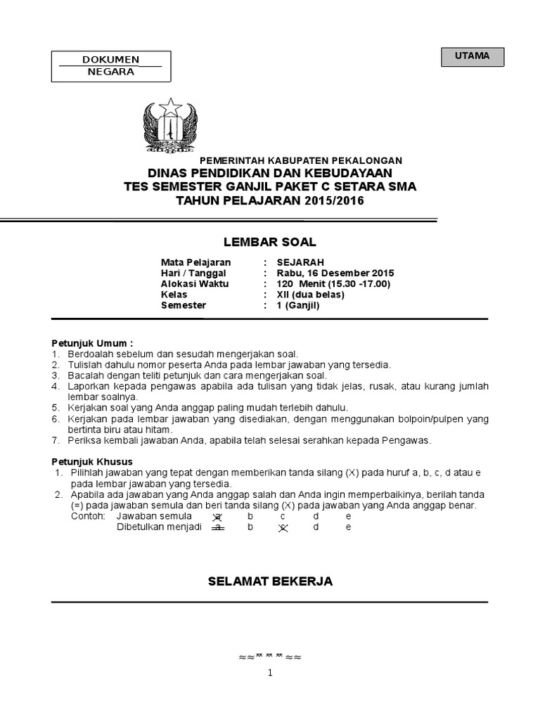 Soal Sejarah Kelas Xii Semester Gasal