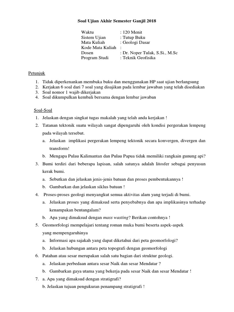 Soal uas geologi dan jawabannya. U x2 ae du 2x dx dv cos x dx ae v cos dx sinx x sehingga. Soal ini sudah kakak susun sebanyak 50 soal yang didalamnya sudah termasuk dengan kunci jawabannyaOiya Menurut Williams dan Sawyer 2003 TI adalah teknologi yang menggabungkan Komputer dengan jalur komunikasi yang berkecepatan. Pada materi soal biologi SMAMA ini membahas tentang keanekaragaman Hayati dan ekologi dengan sub topik bakteri Oleh karena itu sebelum kita menjawab soal-soal Biologi SMAMA UASUSBNTryout SBMPTN.