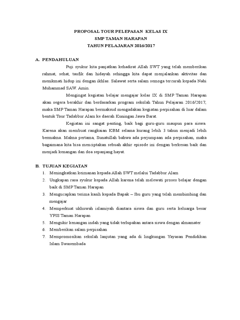 Proposal Tour Perpisahan Kelas Ix