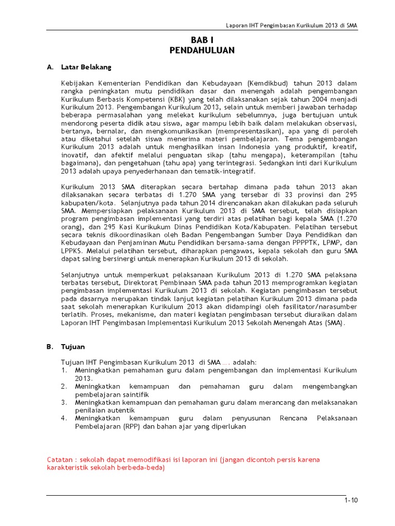 Contoh Laporan Pendampingan Implementasi Kurikulum 2013 Sma Kumpulan Contoh Laporan