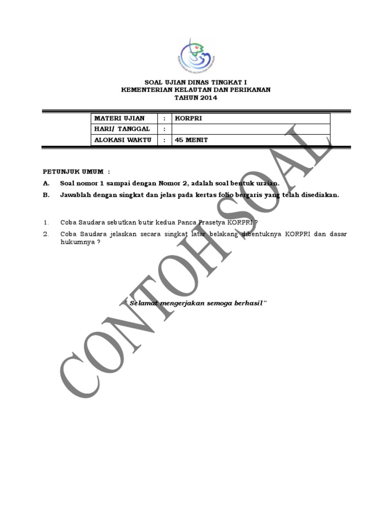 Admin dari blog Contoh Soal Terbaru 2019 juga mengumpulkan gambar-gambar lainnya terkait contoh soal ujian dinas tingkat 2 2018 dibawah ini. View Essay - CONTOH SOAL KORPRI from A 9 at ITT Technical Institute Murray UT. Soal ujian dinas tingkat 2 informasi guru berikut ini adalah soal ujian dinas tingkat 2 yang bisa anda download secara gratis di website kami.