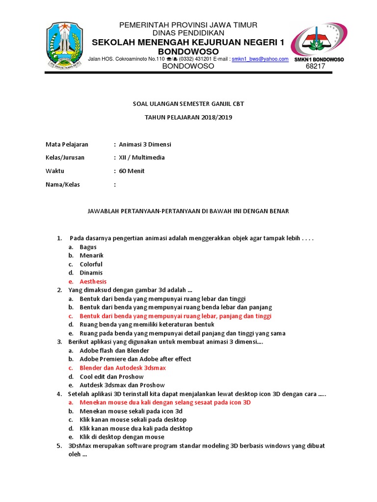 Latihan Soal Dan Kunci Jawaban Animasi 3d Xiimm