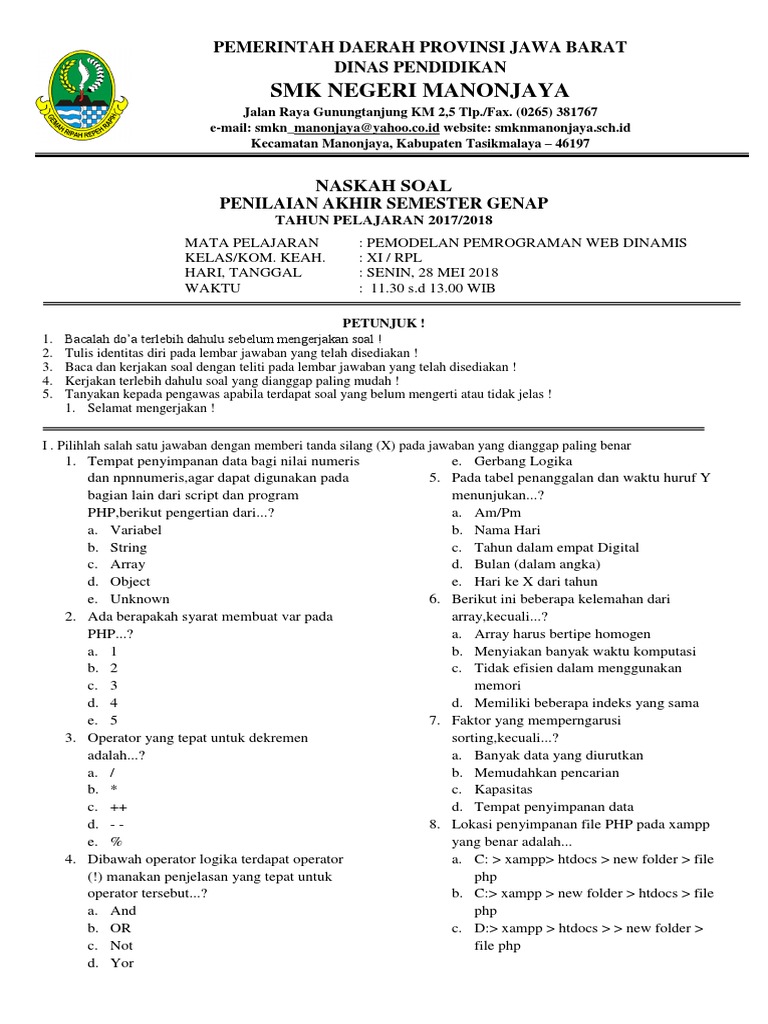 Kumpulan Soal Pemrograman Web Dinamis Kelas Xi Smkn Manonjaya