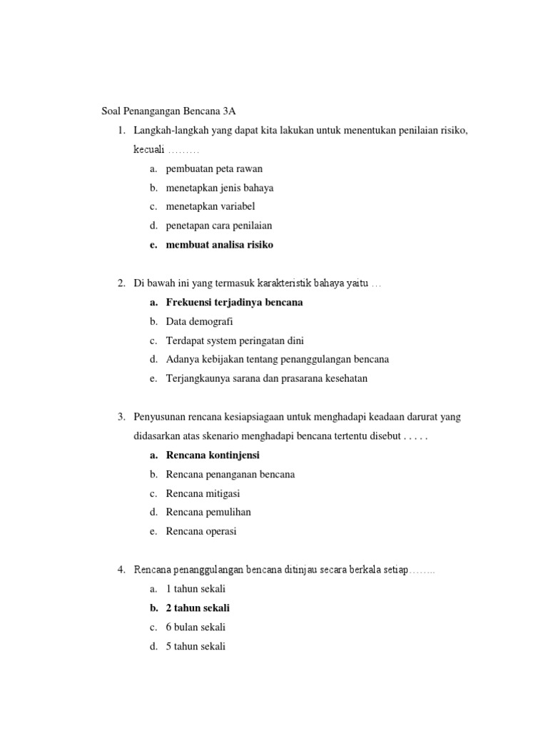 Download Soal Pilihan Ganda Tentang Mitigasi Bencana Alam PDF 1500 MB - SamPDF SamPDF Latihan soal PAS PAT UKK Geografi kelas 10 Sepuluh Soal dan kunci PAT Geografi kelas X dalam pelaksanaan Ulangan. Ada beberapa komponen yang terancam ketika bencana kekeringan terjadi. Soal pilihan ganda tentang mitigasi bencana alam.
