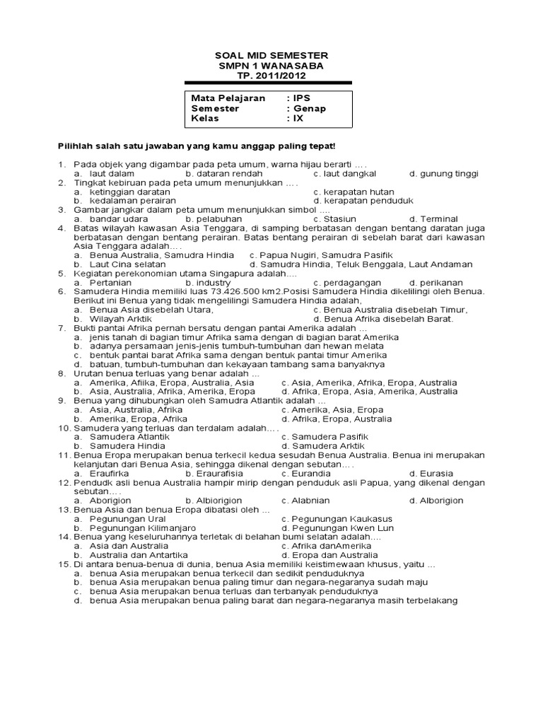 Contoh soal geografi kelas 9 semester 1 dan semester 2 kurikulum 2013 untuk kisi kisi latihan soal uas mid. Contoh Soal IPS kelas 9 semester 1 dan semester 2 kurikulum 2013 beserta kunci jawaban nya lengkap dan terbaru soal pilihan ganda dan esay a. 1 C 6 B 11 B 16 C 2 C 7 A 12 C 17 D 3 C 8 A 13 C 18 A 4 A 9 D 14 B 19 B 5 A 10 A 15 C 20 D II.