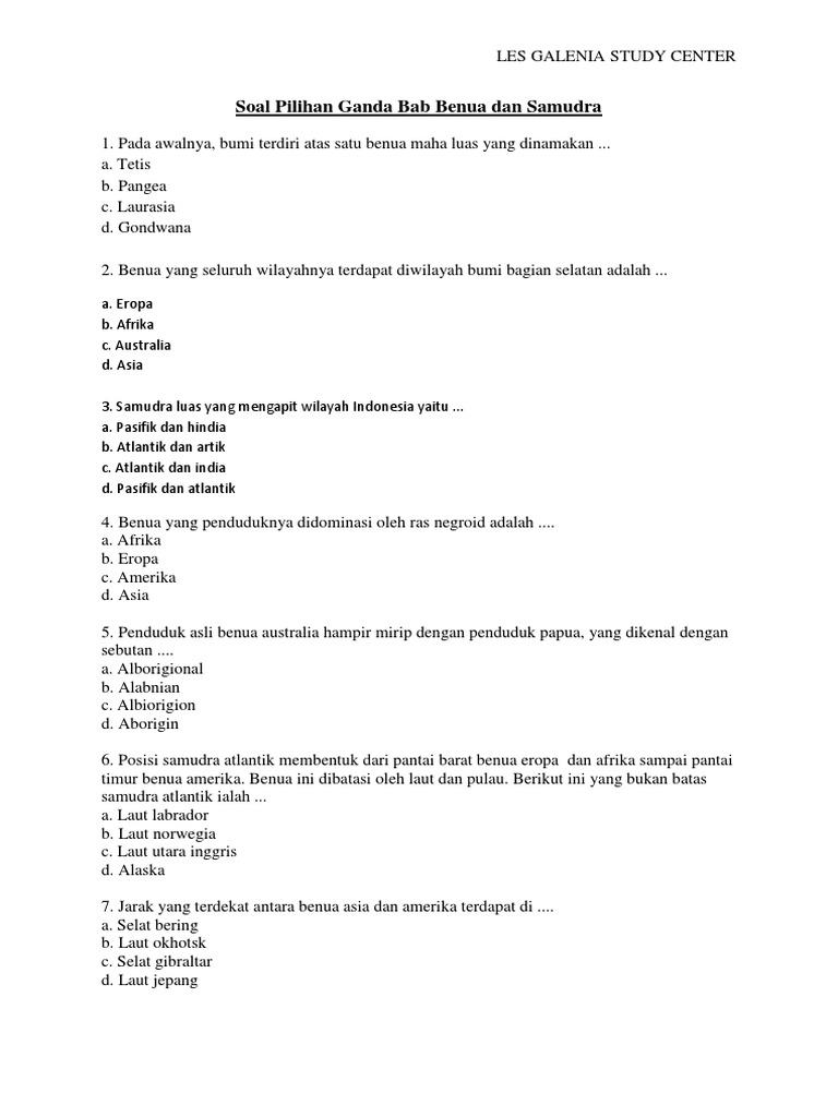 Soal Ips Pilihan Ganda Bab Benua Dan Samudra