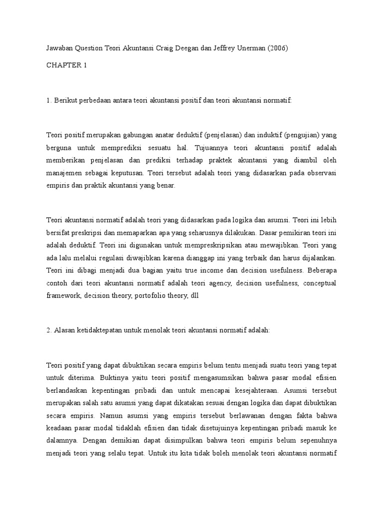 Jawaban Question Teori Akuntansi Craig Deegan Dan Jeffrey Unerman