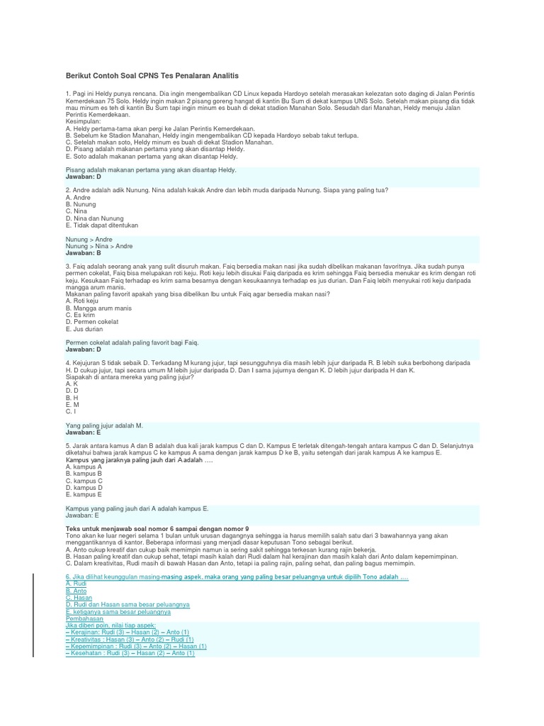 Soal Penalaran Analitis Cpns Dan Pembahasannya Pdf