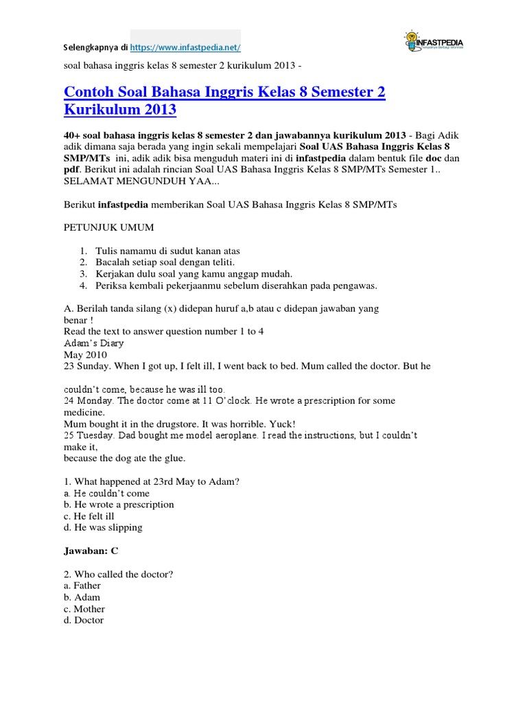 Soal Bahasa Inggris Kelas 8 Semester 2 Kurikulum 2013 Grammar Language Mechanics
