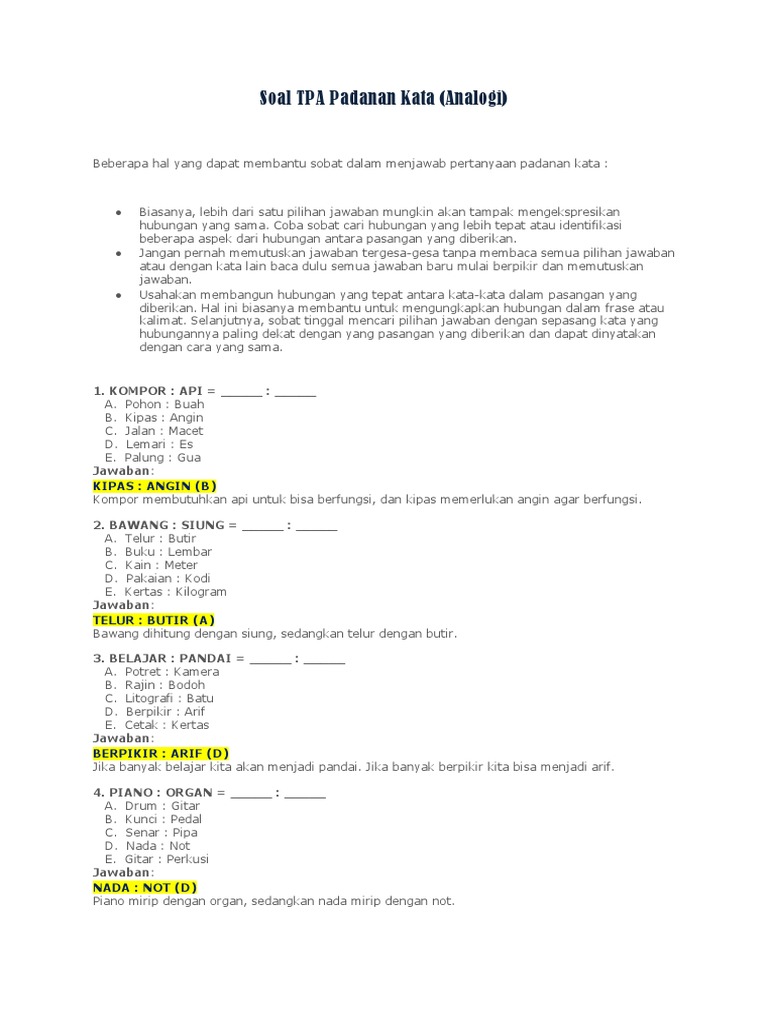 Contoh Soal Padanan Kata Dan Jawabannya Pdf