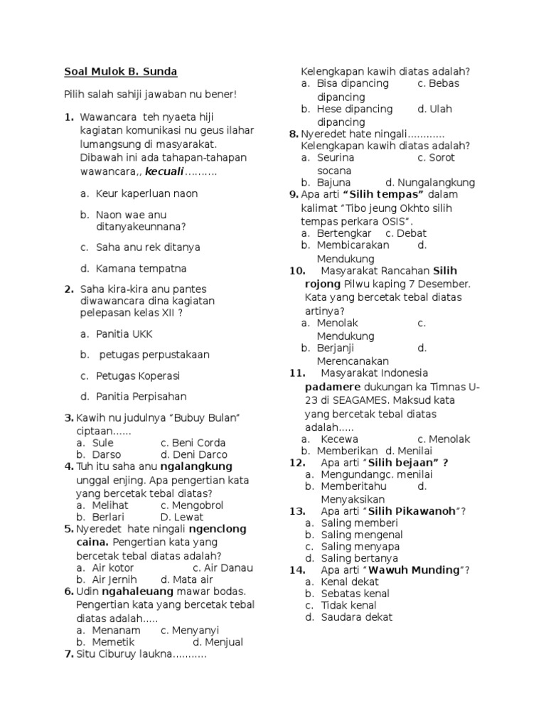 1 dan 2 b. Ceramah Lucu Bahasa Sunda Mp3. Contoh soal dan jawaban seni budaya kelas xi semester 2 pilihan ganda part 5 soal uas bahasa jawa kelas 6 semester 1 dan kunci jawaban.