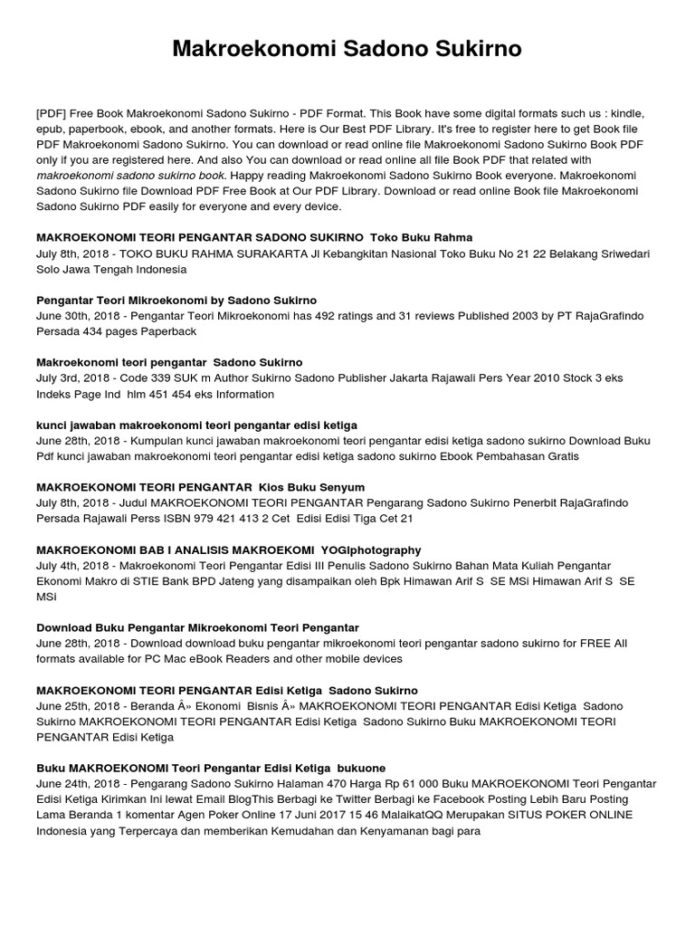 Kumpulan kunci jawaban makroekonomi sadono sukirno edisi ketiga download buku pdf kunci jawaban makroekonomi sadono sukirno edisi ketiga ebook pembahasan gratis. Kumpulan kunci jawaban makroekonomi teori pengantar edisi ketiga sadono sukirno download buku pdf kunci jawaban makroekonomi teori. Sukirno Sadono Pengantar Teori Mikro Ekonomi.