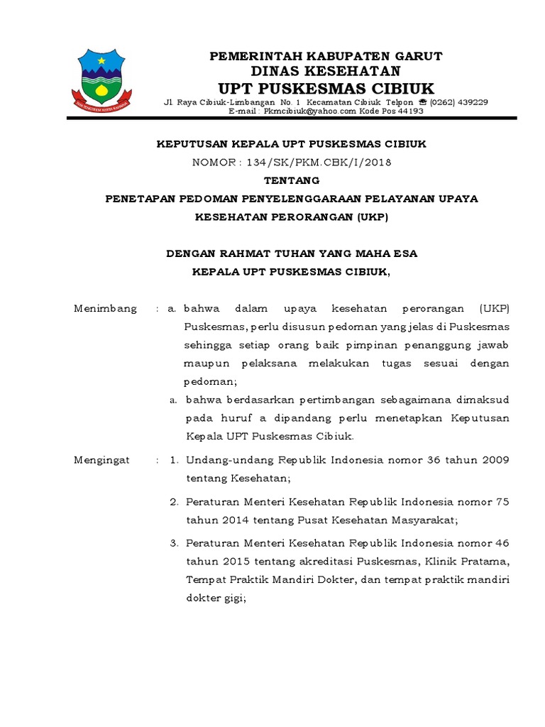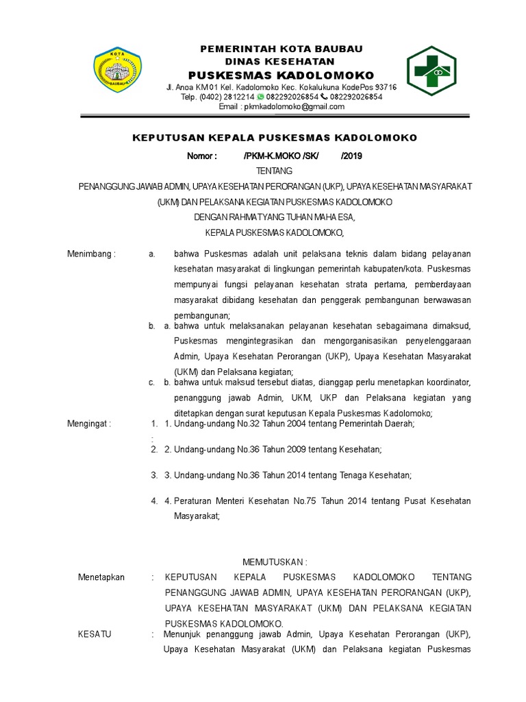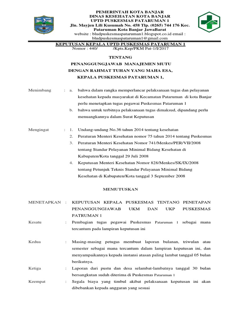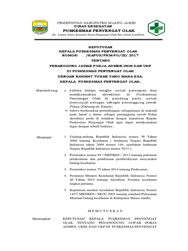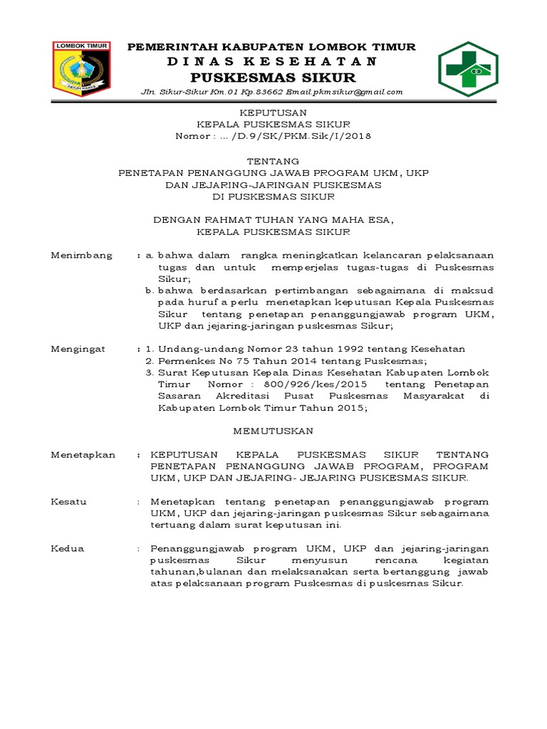 Sk Penetapan Penanggung Jawab Ukm Dan Ukp Puskesmas