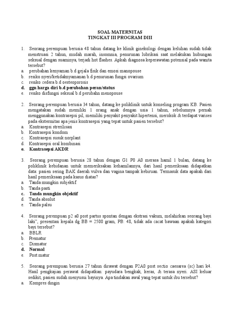 Soal kasus tentang kb dan kunci jawabannya. Berikut ini adalah kumpulan dari berbagi sumber tentang soal keperawatan gerontik pilihan ganda dan jawabannya yang bisa gunakan untuk file revisi dan diunduh secara gratis dengan menekan tombol download biru dibawah ini. Seorang ibu usia 23 tahun melahirkan 2 jam yang lalu di klinik bidan mengeluh merasa ada pengeluaran darah dari kemaluan lemah dan pandangan berkunang-kunang. Contoh soal uji kompetensi ukom kasus keperawatan medikal bedah kmb dan kunci jawaban berikut ini adalah latihan uji kompetensi perawat ukom kmb bagian ke 175 beserta kunci jawabannya serta pembahasannya hai halo teman teman semuanya apa kabar kalian yang dari sabang sampai merauke saya harap kalian baik baik saja yaa dan teteap fit serta.