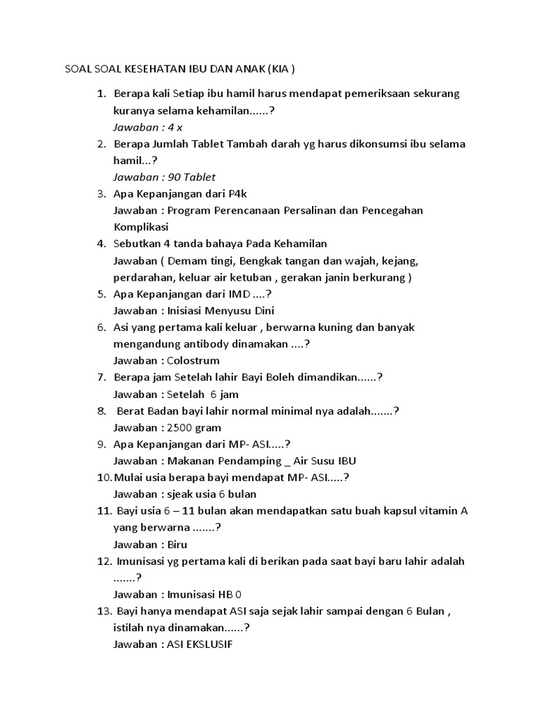 Soal Soal Kesehatan Ibu Dan Anak