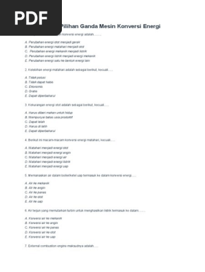 Contoh Soal Pilihan Ganda Mesin Konversi Energi
