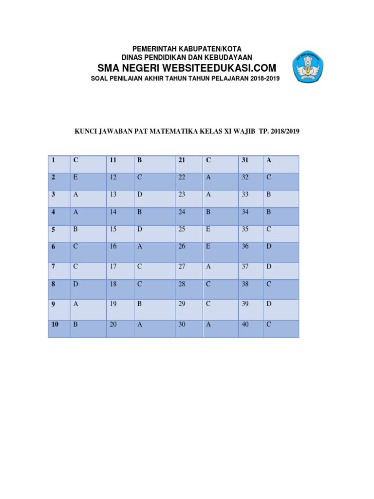 Kunci Jawaban Pat Mtk Kelas 11 Websiteedukasi Com
