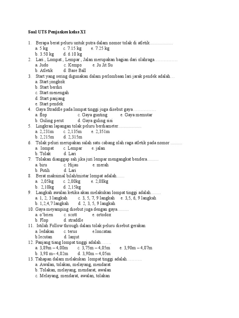 Soal Penjas Kelas Xi Beserta Jawabannya Guru