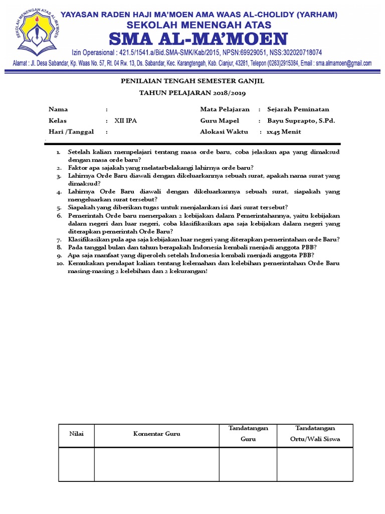 Naskah Soal Pts Sejarah Peminatan Kelas Xii Ipa
