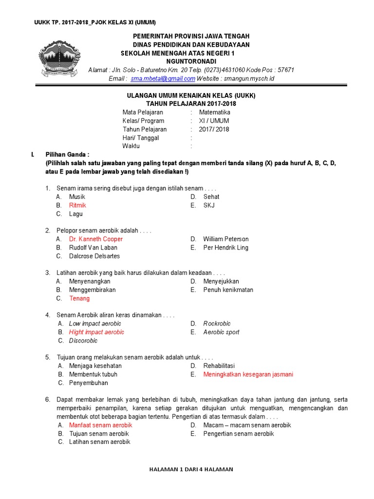 Soal ukk pilihan ganda senam ritmik. Daftar Hadir Siswa Mapel PJOK Kelas X dan XI Semester 1 TP 20202021. Feb 02 2021 Soal tentang senam irama ritmik dan kunci jawaban. Ammiin nah kakak ada kabar baik untuk adik adik yang duduk dibangku kelas II SDMI kakak telah selesai menyusun contoh soal Ulangan Akhir Semester untuk mata pelajaran Pendidikan Jasmani dan Kesehatan atau PJOK.