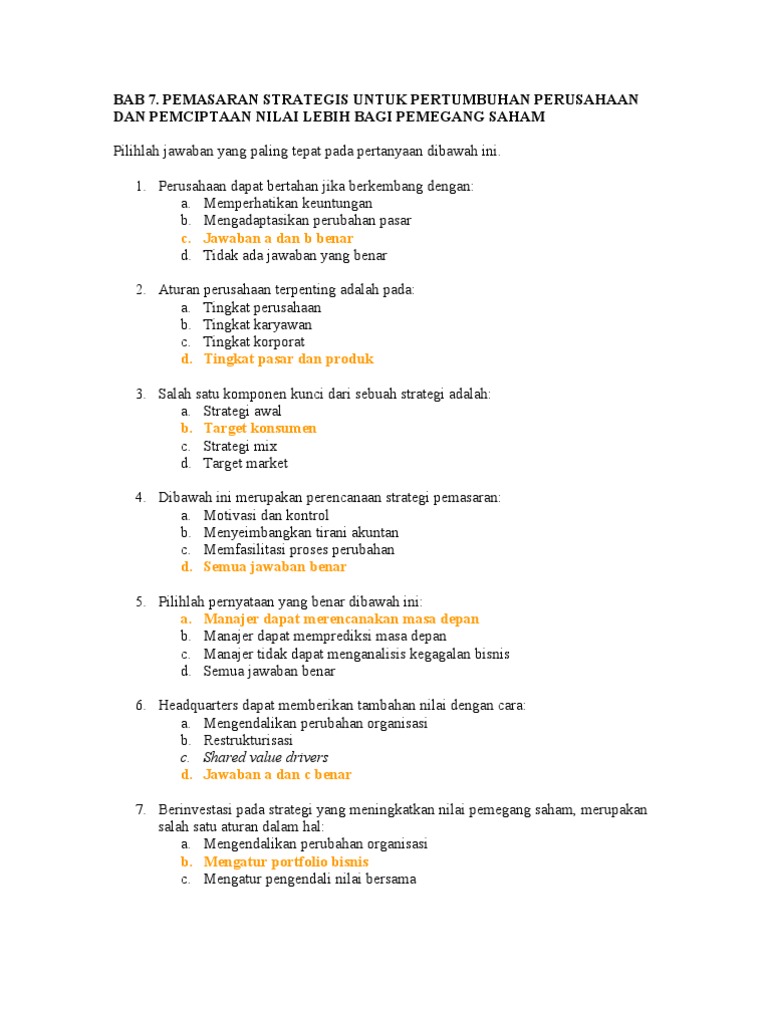 Soal Pilihan Ganda Dan Jawaban Perencanaan Pemasaran Ilmusosial Id