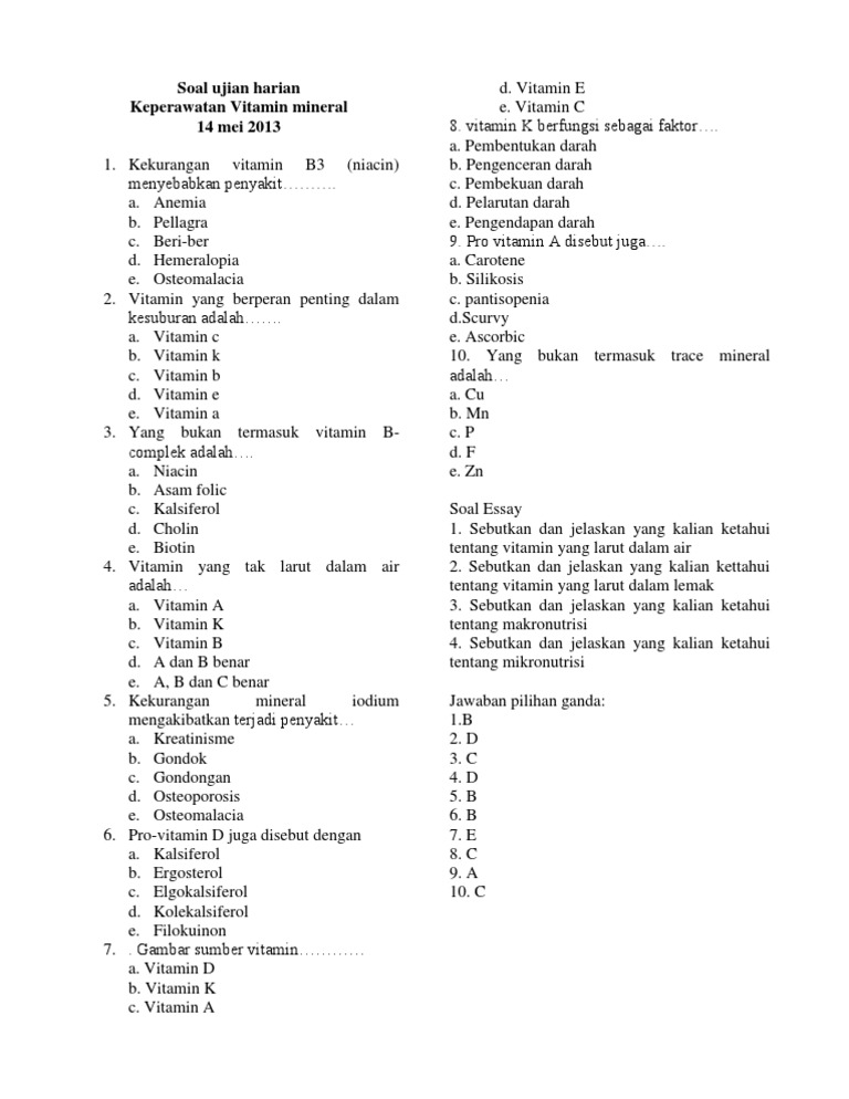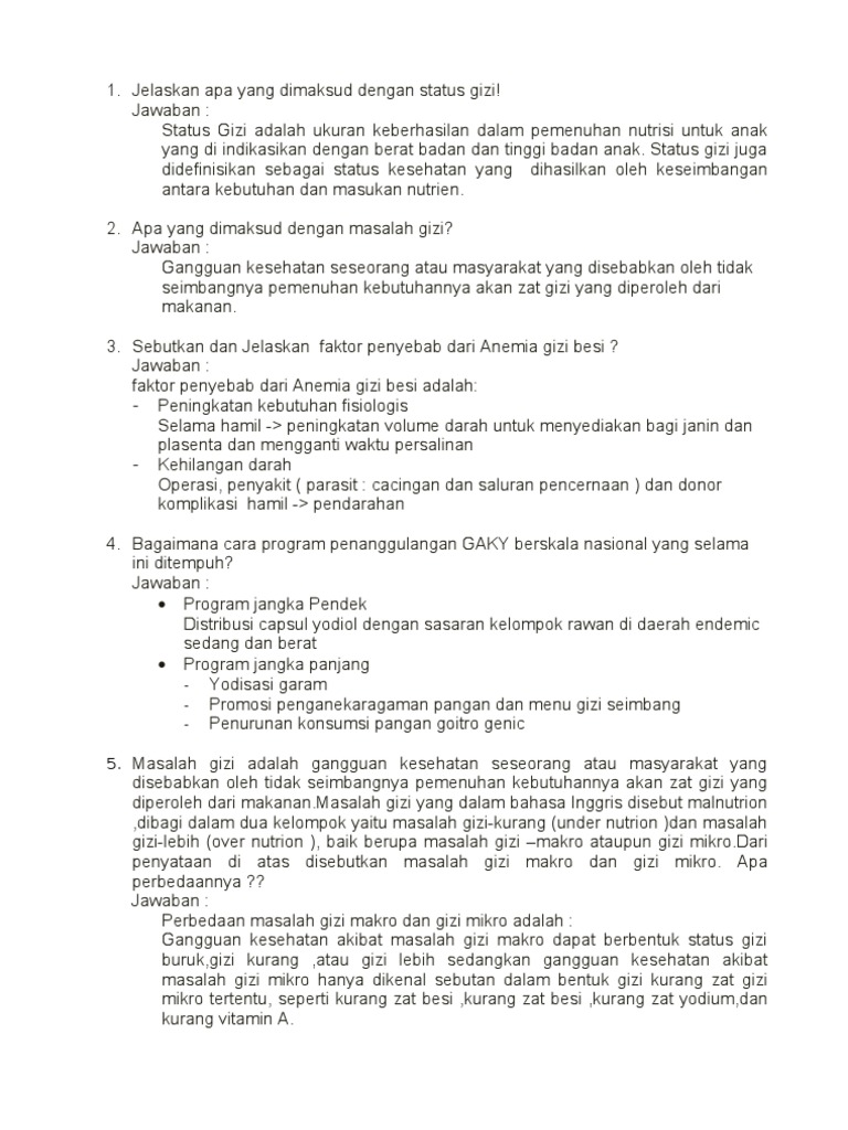 Soal Essay Gizi Fkm Uniska Semester V Lima C D