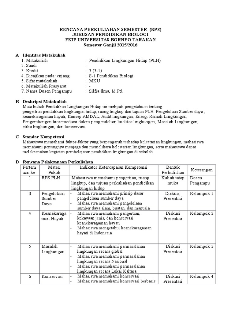 Silabus Mata Kuliah Pendidikan Lingkungan Hidup Ppt Download