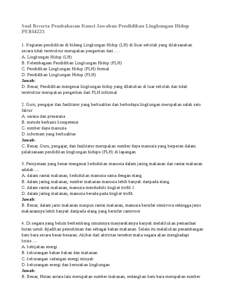 Soal Beserta Pembahasan Kunci Jawaban Pendidikan Lingkungan Hidup Pebi4223