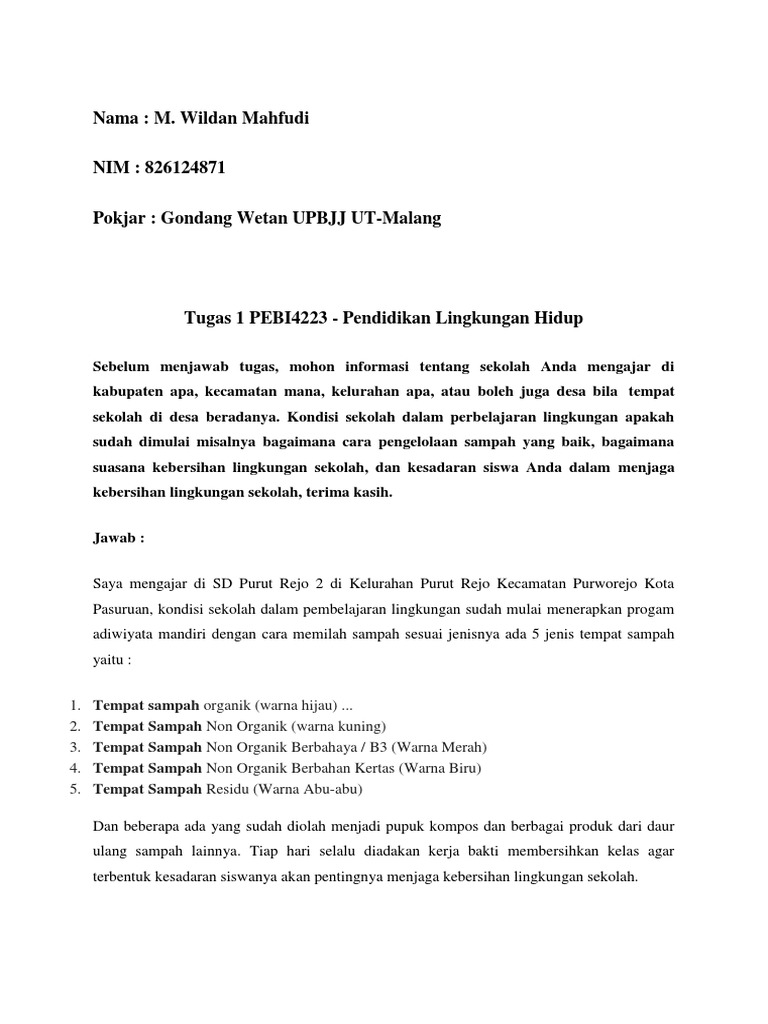 Tugas 1 Pebi4223 Pendidikan Lingkungan Hidup M Wildan Mahfudi 1