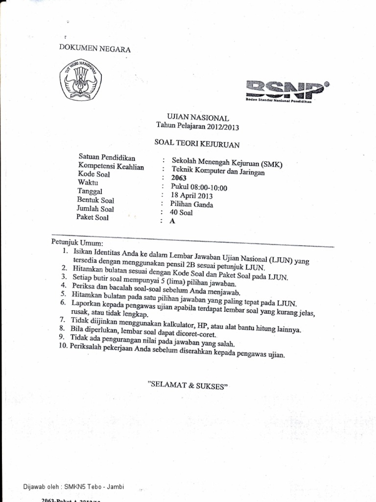 Soal Dan Jawaban Un Tkj Teori Kejuruan Tahun 2013